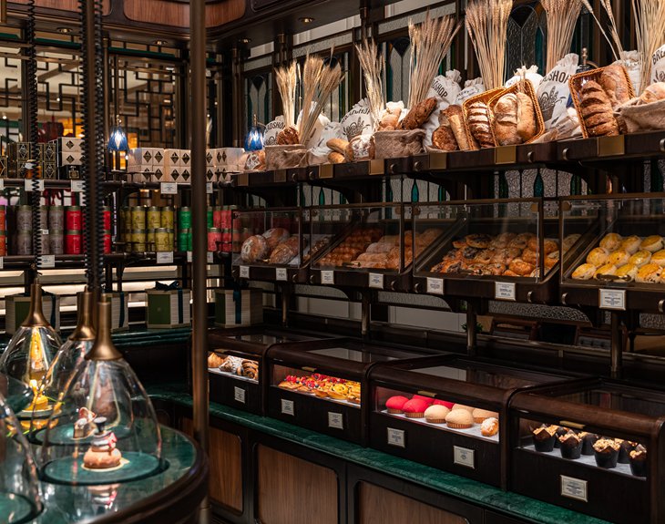 以伦敦为主题的零售商店是丘吉尔餐厅内其中一个必到之处,琳琅满目的烘焙甜点展现在您眼前,维多利亚时代风格橱窗整齐排列新鲜出炉的面包、色彩缤纷的手工巧克力、饼干、蛋糕,还有包装精美的糖果、茶叶、果酱和蜂蜜等作为伴手礼。