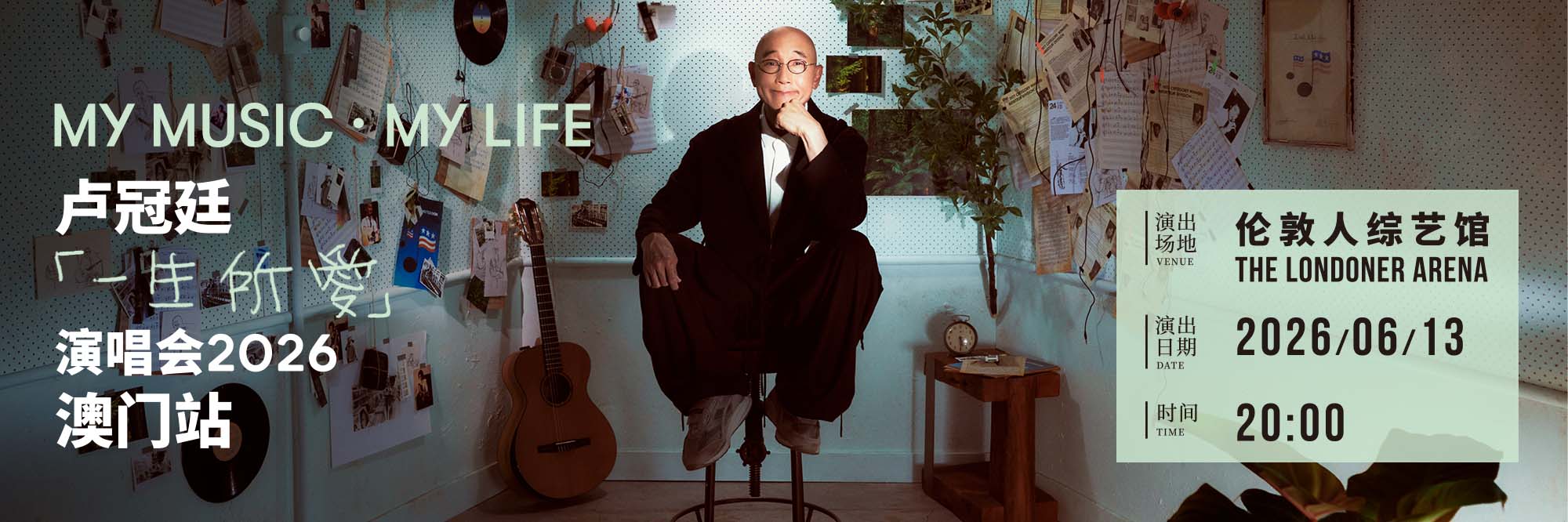 2026年6月13日,卢冠廷将这份饱含生命哲思与爱意的音乐之旅带到澳门,邀您一同感受经典粤语金曲的温暖与力量。这场一生所爱,有没有你的故事呢?