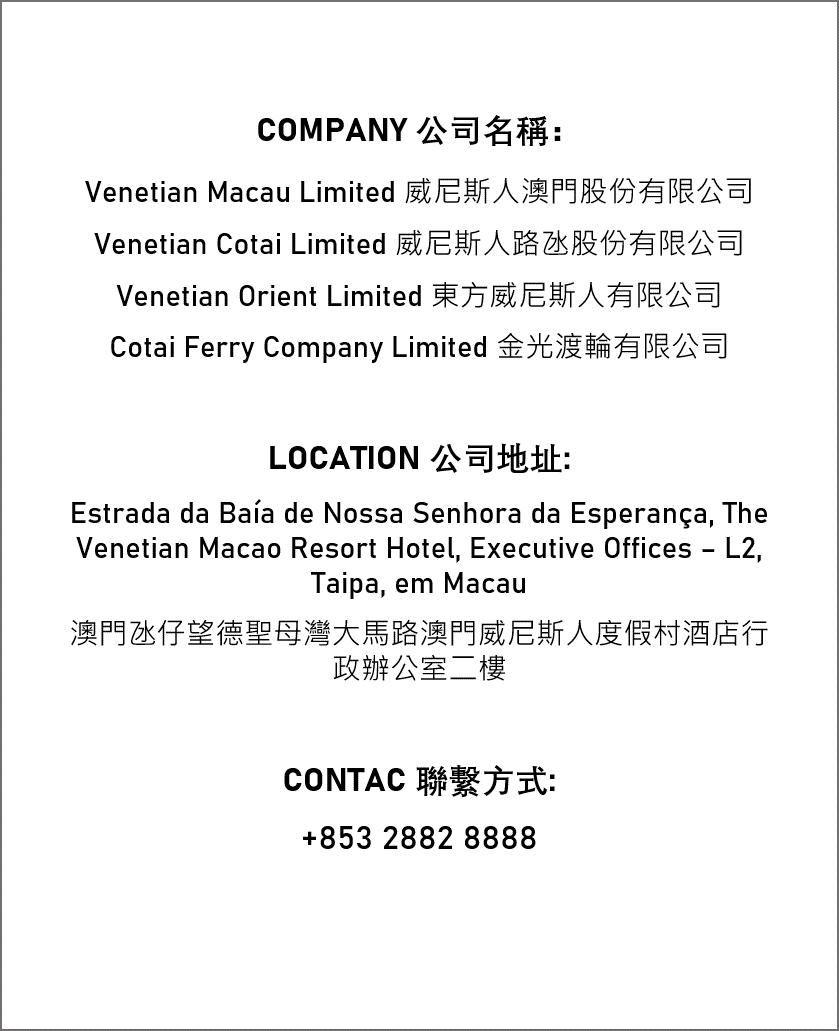 | 邮寄: | 威尼斯人澳门股份有限公司 |
