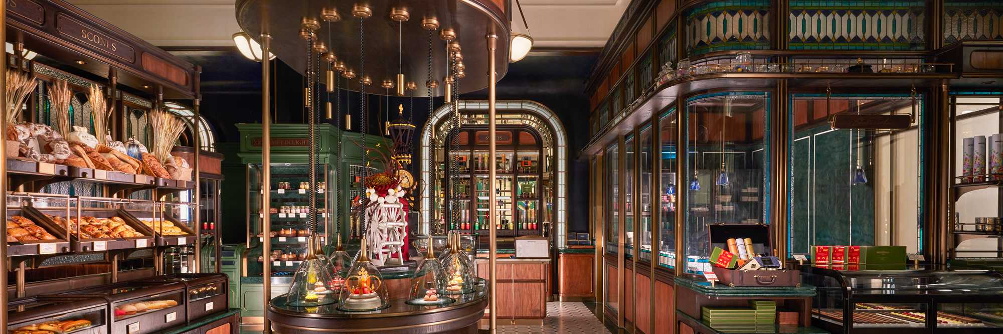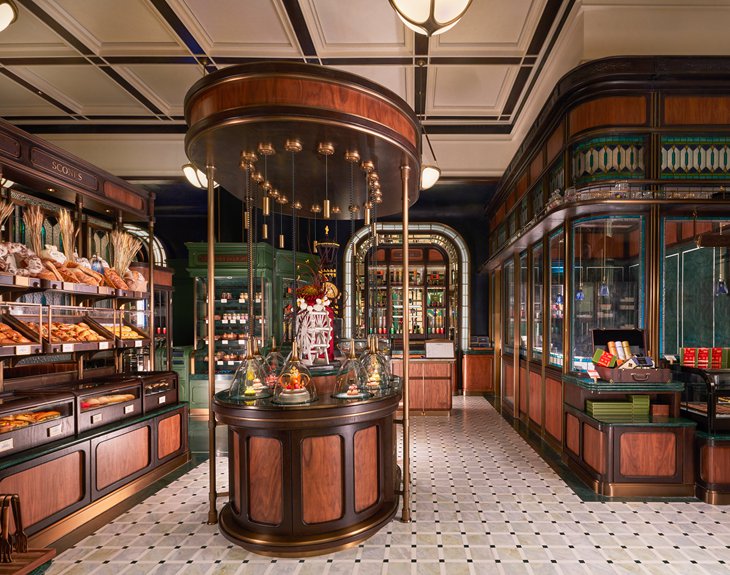 以伦敦为主题的零售商店是丘吉尔餐厅内其中一个必到之处,琳琅满目的烘焙甜点展现在您眼前,维多利亚时代风格橱窗整齐排列新鲜出炉的面包、色彩缤纷的手工巧克力、饼干、蛋糕,还有包装精美的糖果、茶叶、果酱和蜂蜜等作为伴手礼。