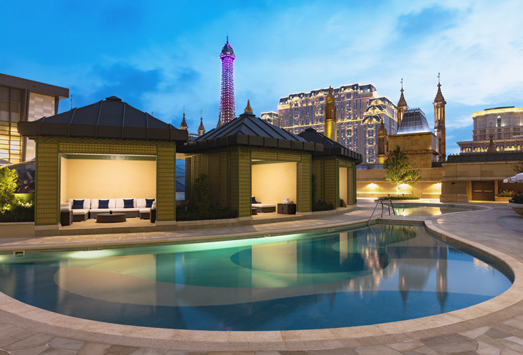 地点: 君乐游泳池: 伦敦人名汇贝凯楼4楼 (邦德楼的住客前往4楼即可直达君乐泳池) *酒店规定所有身高低于1.4米的小童在使用游泳设施时需穿上充气臂圈或救生衣(酒店免费提供)。 *御匾名匯住客可尊享池畔小屋服务